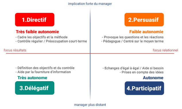 Le tableau des modes de management ci-joint reprend les 4 grands types de management et leurs spécificités :